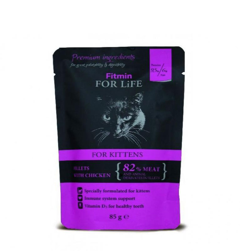Fitmin паучи для котят с курицей, 85 гр в зоомагазине Лепшы Сябар